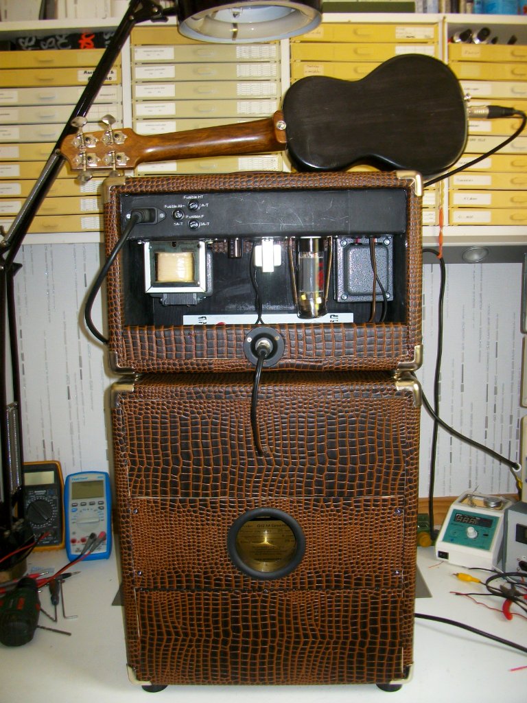 Dans la tête d'ampli ! Il va falloir fabriquer une grosse tête d'ampli pour éloigner la réverb .(parasites)