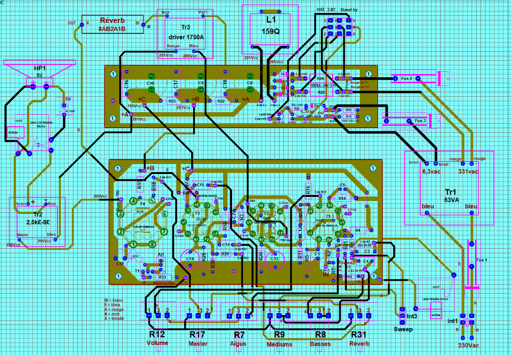 Le tank de reverb est noté 8EB2C1B sur ton schéma, c'est une erreur ? Car c'est un tank 800 ohms IN alors que le transfo sort en 8 ohms... Il faut un 8AB...