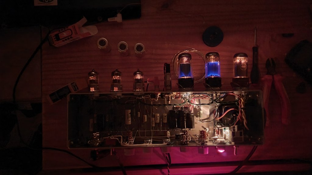 Dans l'ensemble cet ampli est très expérimental, je me suis amusé à essayer des choses, à défaire, à refaire, à modifier des choses, à changer des bidules; à apprendre quoi. Eh ben les amis à la fin de tout ça, ça fait un ampli drôlement sympa :)