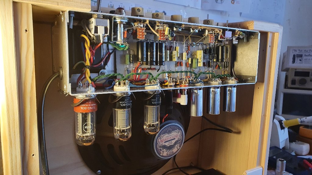Je vous présente le dernier né, le "Tweed Terror", un 5E3 trèèèès modifié avec au programme: