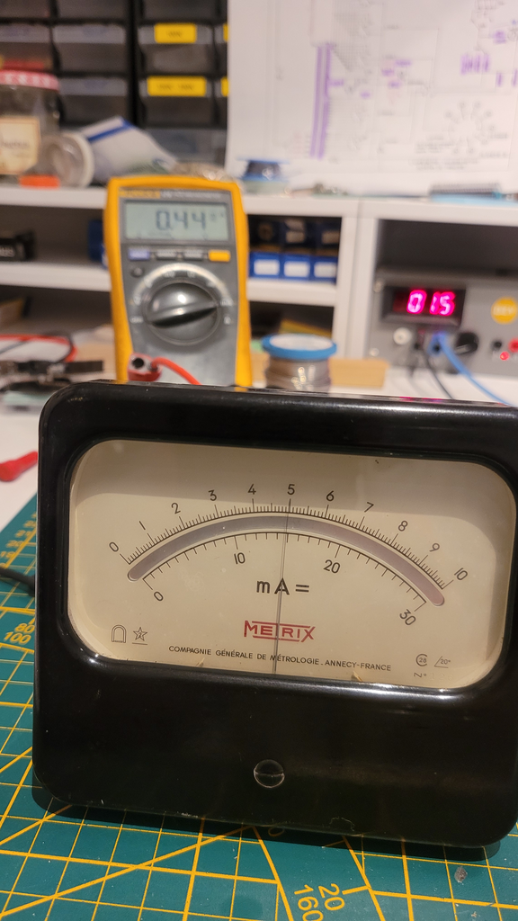 Il reste les valeurs des qq résistances de shunts (qui sont quand mêmes bonnes à qq centièmes d'ohms près) qui permettent de gérer le calibre du galvanomètre, mais quelques soit la position (12AX7 testée sur calibre 3mA et 6L6GC sur calibre 100mA) j'ai toujours une mesure en dessous des datasheets.