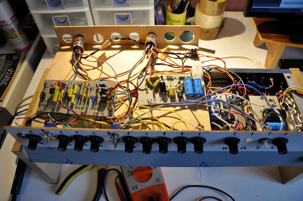 Après une longue pause, j'ai repris la conception de mon ampli. Je posterai quelques photos rapidement mais en gros, j'ai construit le préamp que j'ai monté dans un second "chassis" en bois pour effectuer les tests. Il y a quelques modifications par rapport à ce que j'avais prévu.
