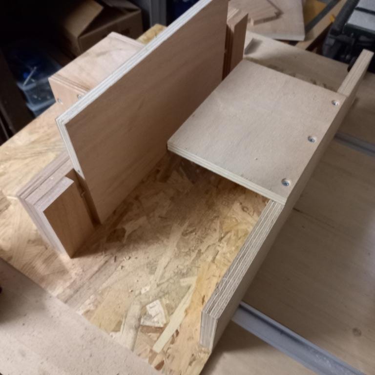Je suis parti sur du ctp de 18mm et j'ai fabriqué un outillage pour faire les découpes des queues droites à la scie circulaire.