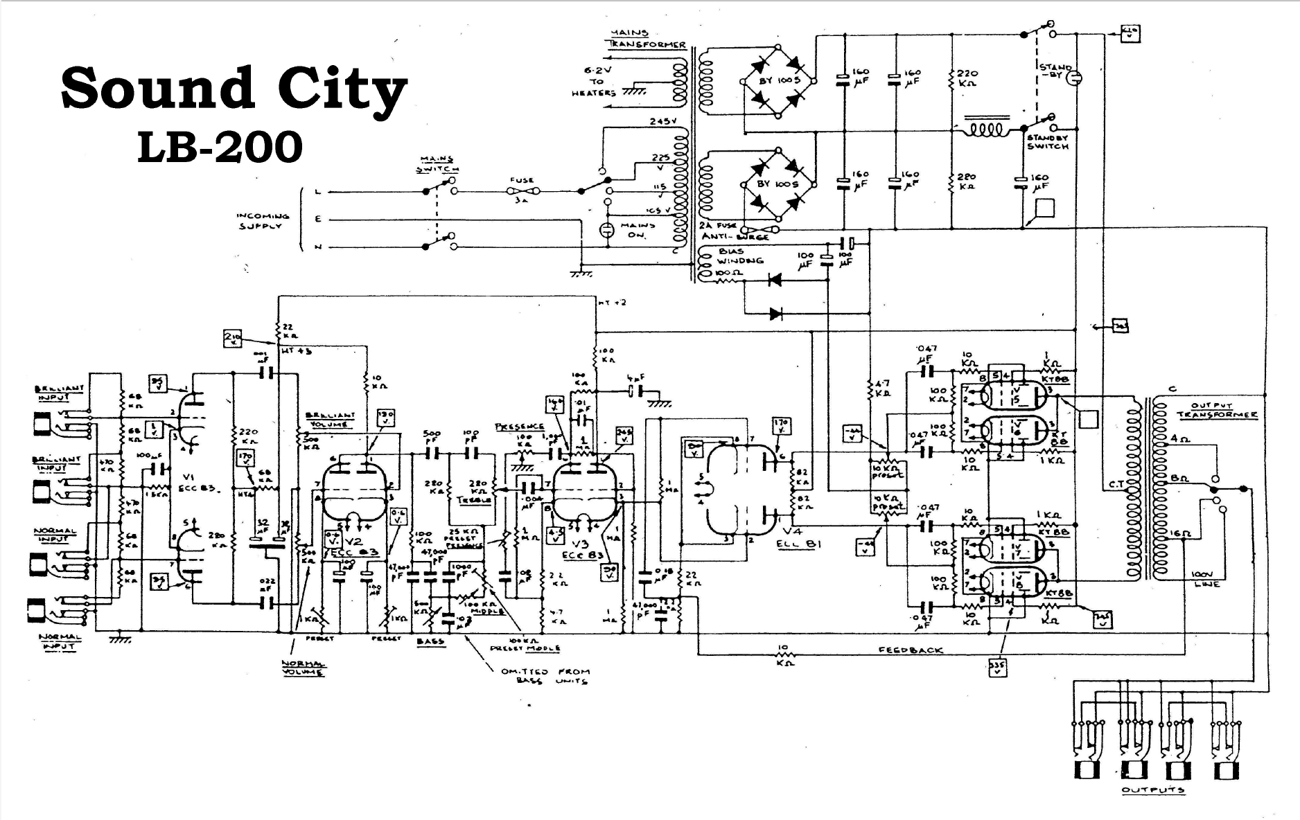 Le Sound City est vraiment très cousin du Hiwatt 201 ... (y compris quand on voit les photos des "tripes" de l'ampli ...