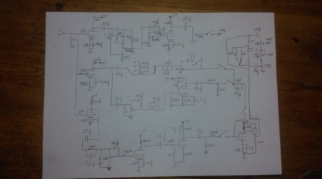 Ensuite je vois plusieurs switch à des endroits où tu pourrais avantageusement mettre un switch SPDT (ou relais si ce soint des relais), comme à l'entrée du cathode follower en bas à droite de ton schéma.