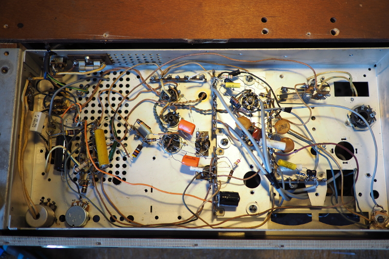 Le tout sur le chassis d'origine et le caisson d'origine, qui était énorme et pas prévu pour tous ces potentiomètres donc qui a bien été charcuté