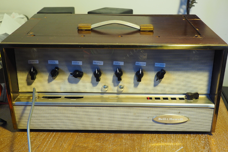 Je vous présente mon projet, réalisé à base de récup (principalement un vieux magnéto à bande Bell&Howell et quelques pièces d'un autre magnéto)