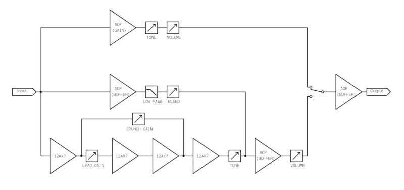 Moui bof, l'idée était justement de mixer à loisir les 2 signaux (crunch et lead), et un potar stéréo ne permet pas de les doser individuellement.McColson a écrit : 13 févr. 2019, 23:05 Avec un potar stéréo tu pourrais gagner de la place, par exemple en groupant gain 1 et gain 2. Ton schéma n'est pas complet dans la page 1, du coup j'ai du mal à imaginer les mods possibles.