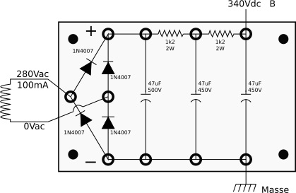 bilbo_moria a écrit : 13 avr. 2019, 9:35 Oui, le transfo est assez puissant pour alimenter les 2 x 12AX7 : il peut délivrer 25mA et chaque triode doit consommer quelques mA (il faudrait vérifier / calculer pour la dernière triode, mais ça doit passer à l'aise).