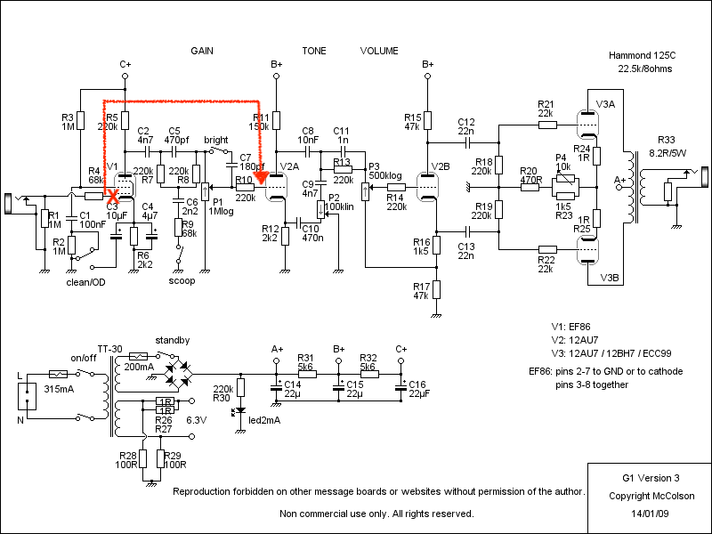 Comme convenu j ‘ai shunté la lampe EF86 ,j’ai joué quelques temps et je n’ai pas réussi à renouveler la panne,j’ai aussi remplacer les 3 lampes par des neuves que j’ai reçu et rien à signaler. J’ai toujours une différence de température énorme entre les trois lampes , après une heure de fonctionnements ,gain au milieu et volume sur maxi, l’EF86 est Froide, l’ECC82 est à peine tiède par contre la lampe de puissance ,là 12BH7 est brûlante...