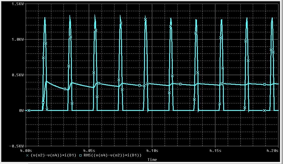 Bref, j'ai simulé sous SPICE un redressement très rustique avec une conso de 100mA (je n'ai pas le modèle GZ34 sous SPICE, j'ai mis 2 diodes 1N4007
