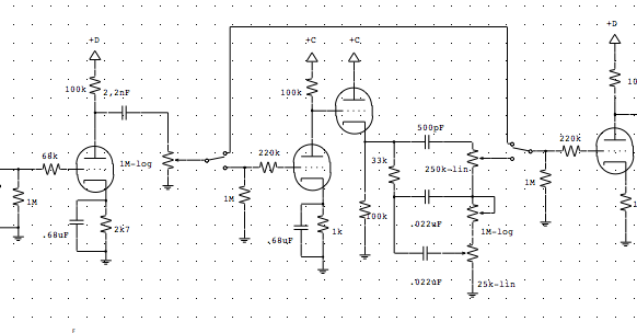 Je pense que je vais garder l'ensemble du préamp comme ça pour le canal High Gain, et recréer en parallèle un canal clean en ajoutant une 12ax7.