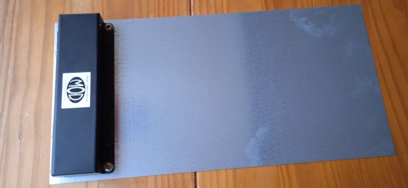 J'ai acheté cette plaque d'acier zingué pour 4,99 € chez LM ( 50 cm x 25 cm) de 0.5 mm d'épaisseur . La théorie dit 3 mm pour faire monter le S/B de 20dB !