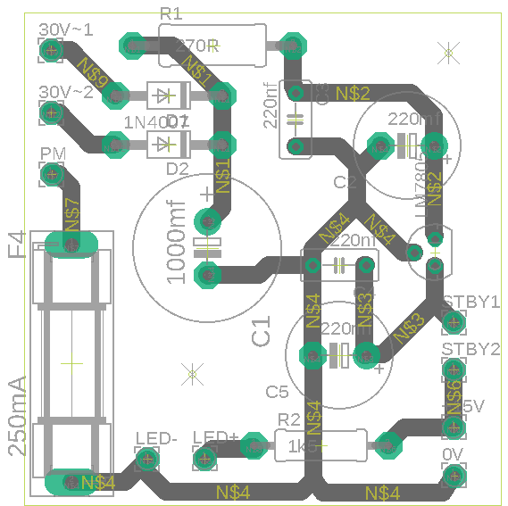 La carte relais de TT utilise le 6,3 et son redressement (4 diodes 1n4007 + une capa de 1000mf) a son négatif référencé également à la masse. Je pense que le fait de mettre ET le point milieu du 6,3 du transfo (3,5v) ET le négatif du 7,5 v redressé en est la cause.