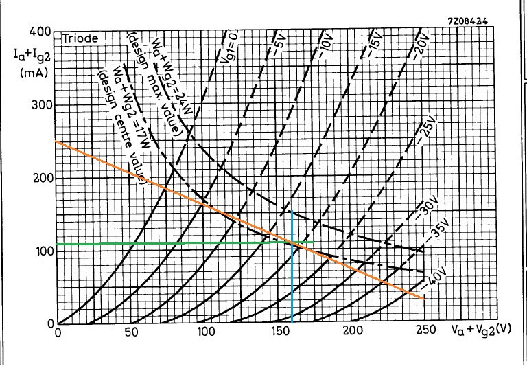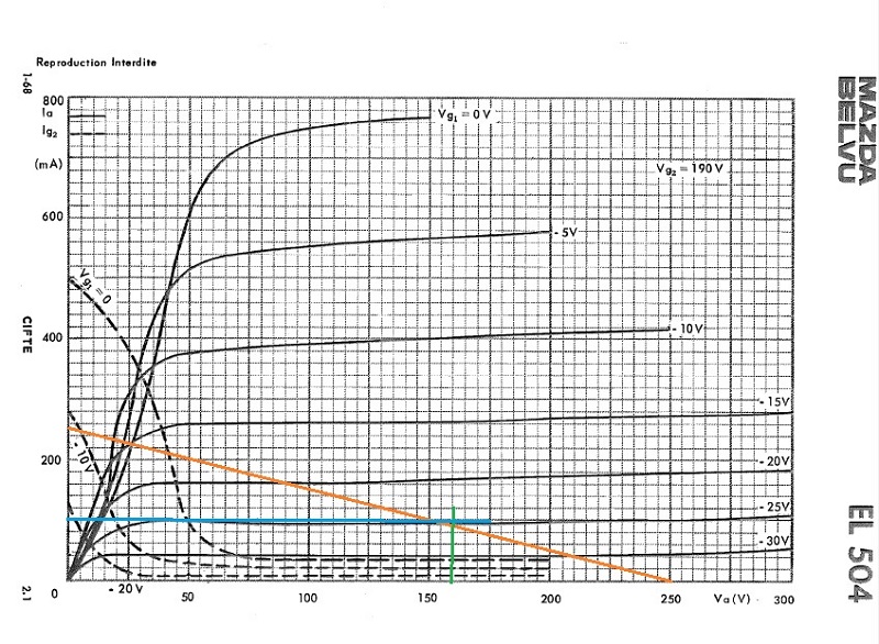 De là, j'ai défini la puissance que je désirais (40W), de là, les tubes (un PP de KT88), de là, mon transformateur de sortie, puis mon préampli (EF86 + 12AX7), puis mon alim (avec régulation et tout le toutim. Le tout en me prenant la tête justement à tracer de la droite de charge, à essayer de piger ce truc qui parait si compliqué alors qu'une fois qu'on a pigé (et tu vas piger j'en suis sur