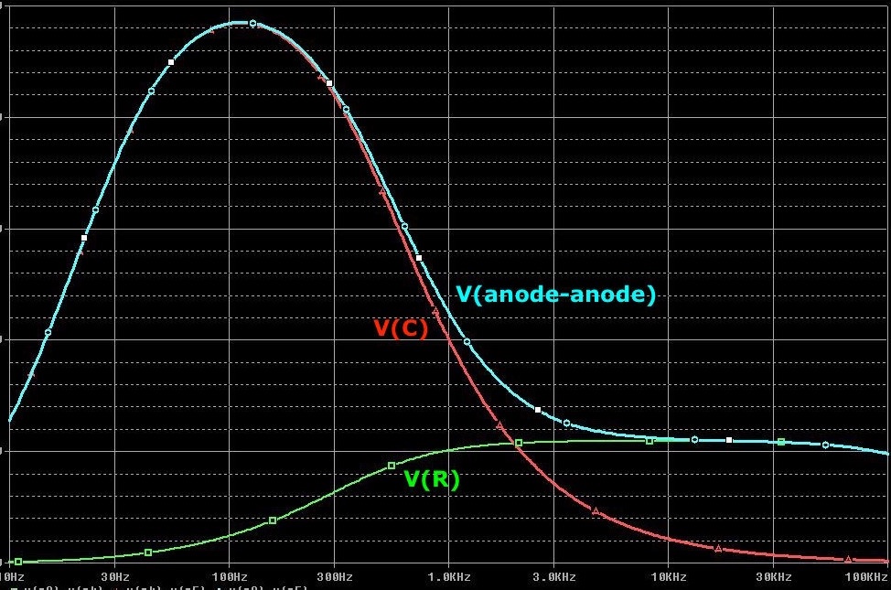 À 100Hz ce filtre présente une impédance de 130kOhms … qui ne change donc presque pas la charge des tubes et c’est le condensateur qui prend toute la tension à ses bornes.