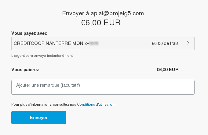 - payer avec le solde de son compte PP ou par prélèvement bancaire (suppose d'avoir au préalable configuré son compte bancaire en tant que moyen de paiement par prélèvement, ce qui prend une grosse semaine)