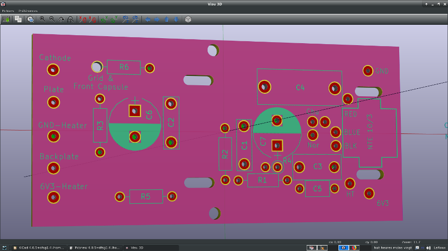 Mais quand je visualise les mêmes fichiers gerber avec ZofzPCB les deux trous pour les vis de fixations sont absents.