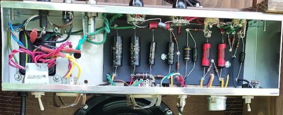 Disons que ça me tenait à coeur d'essayer d'avoir un truc "fidèle" à l'époque. Du moins dans l'âme donc c'était forcément fibre vulcanisée noir, Jupiter red astron copy, full résistances carbone (ce qui me faisait un peu peur niveau bruit, pour ça que j'ai un prit de la 2W parfois), NOS RCA black plates (sauf la 12AX7 où je n'ai trouvé que la long gray plates) et Jensen 8" alnico. Et franchement c'est juste superbe niveau son. De là à dire si ce sont les Jupiter, les lampes RCA où le speaker je ne saurais l'affirmer.