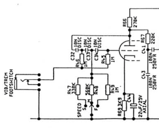 (l'arrêt du LFO s'effectue en interrompant la connexion de R45 et R46 à la masse) A noter aussi le manque de relais pour la fonction footswitch : un simple câble est utilisé ...