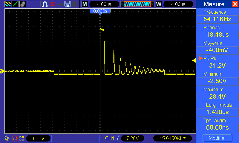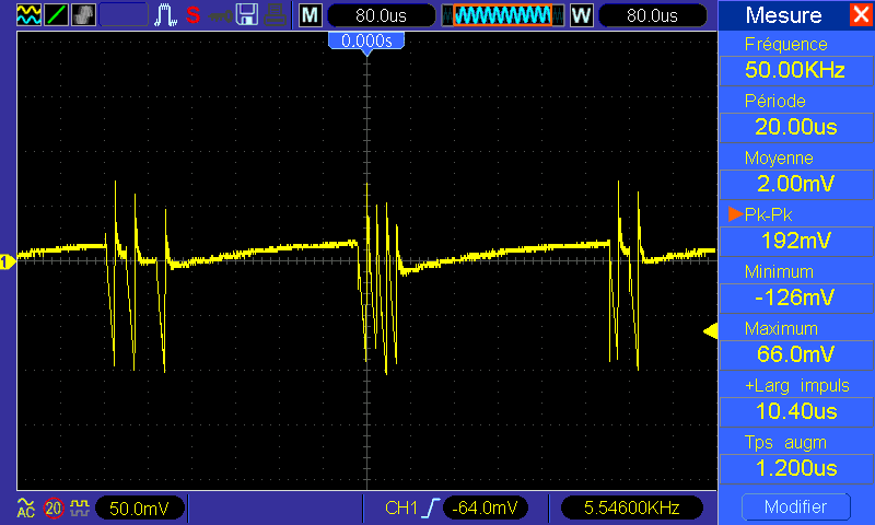 D'ailleurs tant qu'à faire des tests, est-ce que ça t'intéresse qu'on compare qq screenshots d'oscillo pour mettre en lumière le fonctionnement du convertisseur DC-DC, et surtout pour voir le comportement du mien par rapport au tiens, notamment par rapport au bruit. J'ai besoin d'une référence qui fonctionne parfaitement pour voir si le mien à les mêmes "performances" de ce côté là.a-wai a écrit : 02 juil. 2019, 22:37 Ok, j'essaierai de faire des tests dans la semaine, mon module HT étant séparé ça peut se faire relativement facilement
