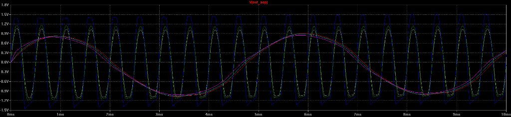 Moins de 2V d'amplitude sur la sortie symétrique.