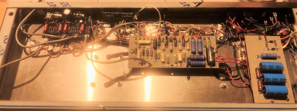 Ce WE, j'ai ajouté le module loop série LND150 de tube town en entrée du PI, ça marche bien, ça ajoute de la puissance, sauf que j'avais une énorme ronflette, encore plus présente si mes potards d'entrée et de sortie de loop étaient à zéro. J'ai pourtant tout cablé en blindé (entrée, sortie vers PI, potards de niveaux E/S du module), j'ai vérifié qu'il n'y avait pas de boucle de masse, et même en éloignant mon module du chassis, ce bruit de fond persistait.