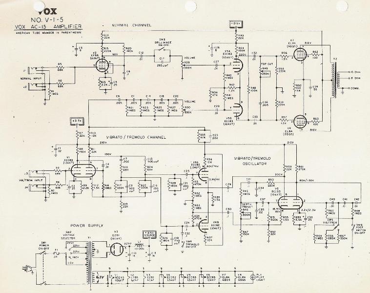 Je vais bientôt entamer la construction d'un vox ac15 période jmi 1960 (schéma en pièce jointe).