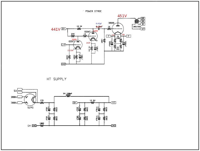 Je dirais qu'il y a un grave soucis au niveau de la 6SN7, et que la 300 est ok.