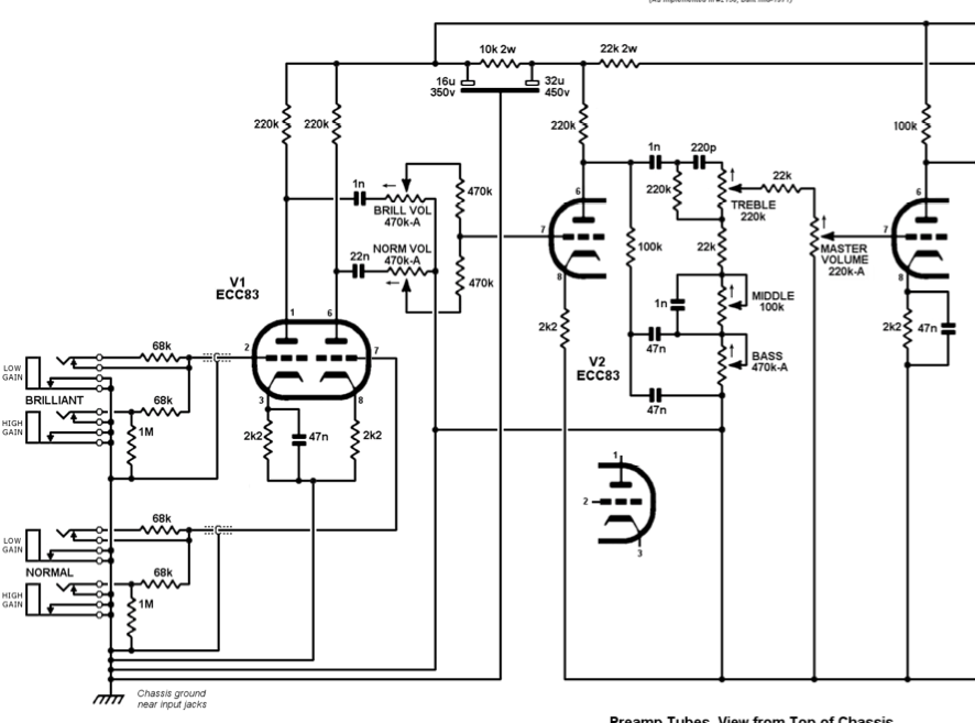 Ou alors, le CF n’a pas grand chose à voir là dedans et c’est « simplement » la disparition du mélangeur passif entre les 2 canaux du DR103 classique (potards gain 470k + R 470k) qui booste le signal arrivant à la triode pré-tone stack ?