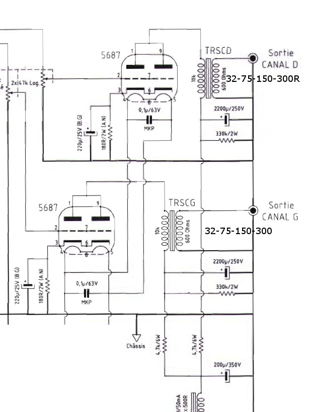 A première vue, je dirais tout de même que dans ton schéma, ce n'est pas possible : les 2 triodes en parallèle n'augmentent pas le gain en tension, qui doit être aux alentours de 15. Avec un signal en entrée de 1V RMS (correspond à 0dBV, sachant que le niveau ligne "grand public" est plutôt à -10dBV, soit 316mV RMS), tu as donc 15V RMS au primaire du transfo, pour une impédance de 10K. Un rapide calcul montre que tu sors environ 25mW, ce qui est vraiment peu...