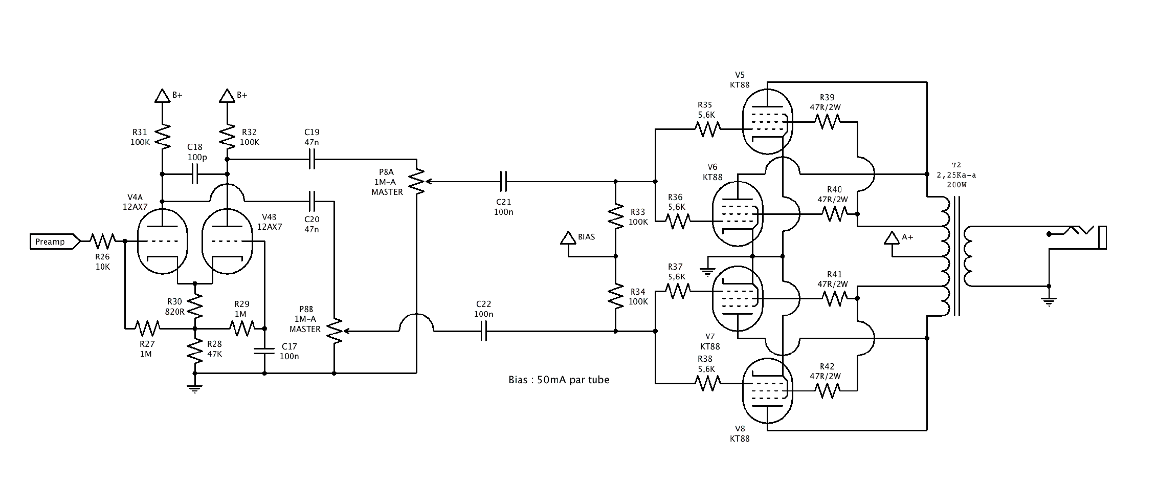 Il me reste également un questionnement au niveau des tubes de puissance (j'y réfléchi toujours...j'ai vu un topic où certains crachaient sur les 6L6 pour la basse: viewtopic.php?t=3350 ).