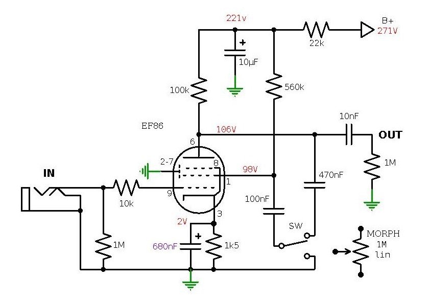 Donc, l'idée m'est venue d'intégrer le "morph" à cet ampli, au niveau de l'EF86.