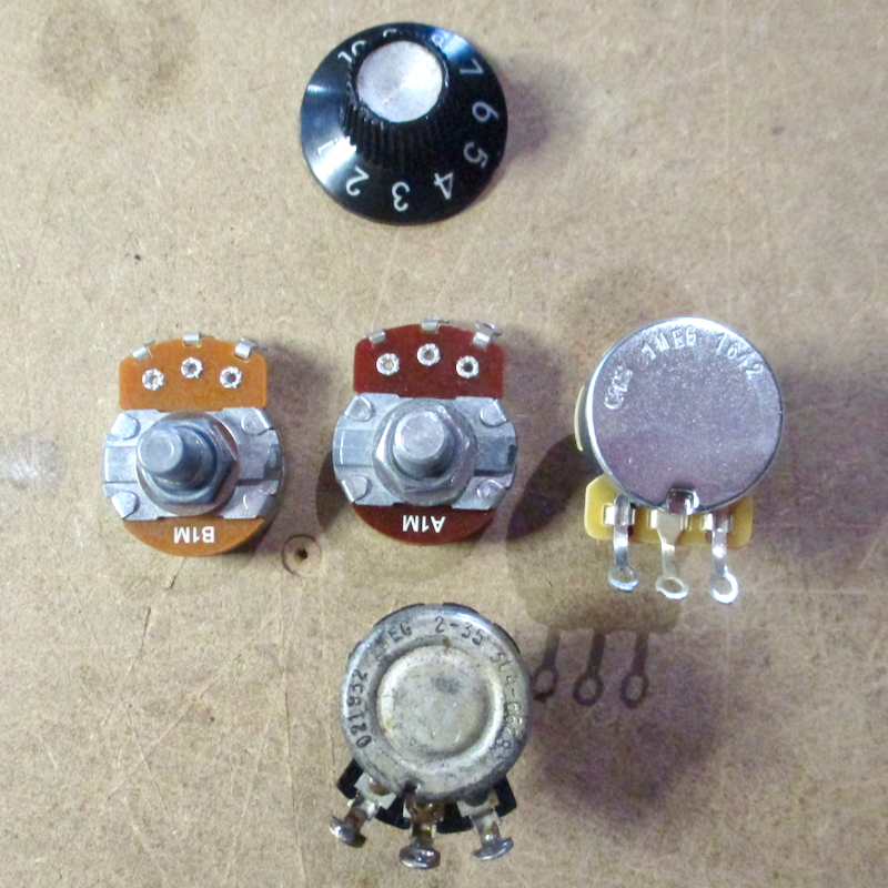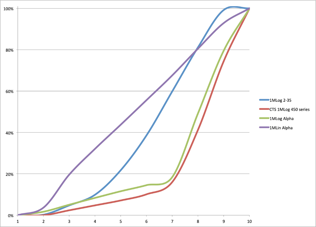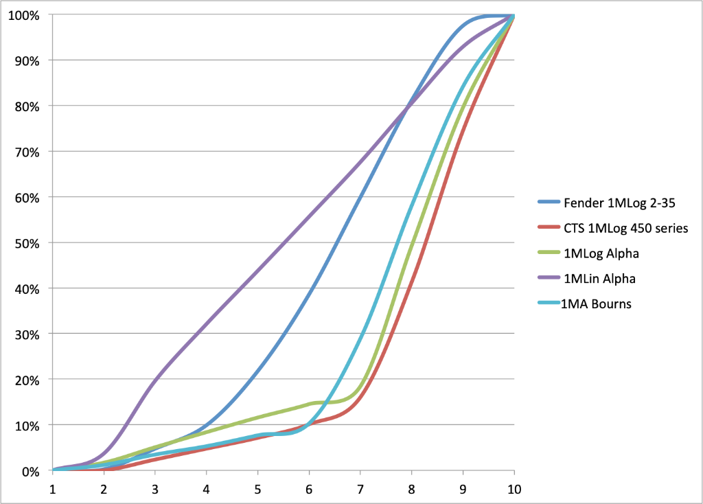 C'est la différence de log taper entre ceux que j'ai utilisés en remplacement (potard de treble : Alpha 24mm 250k-A, potard de volume : CTS 1M-A push pull) et les potentiomètres que Fender utilisait sur ses AB763, à savoir 250k-A 2-35 (treble) et 1M-A 2-35 (volume).