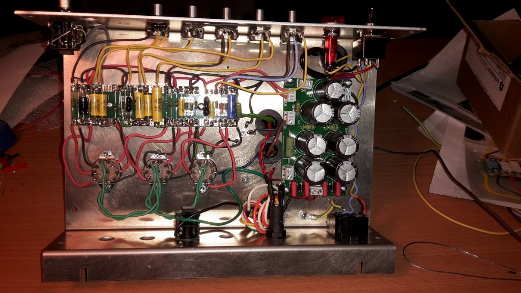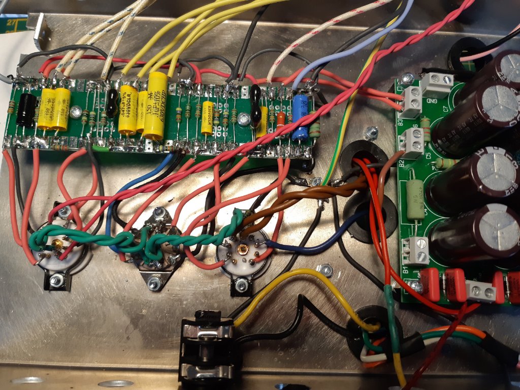 Ton câblage d'origine n'était pas bon non plus probablement. Tu n'as pas torsadé les fils du chauffage filament correctement et il y avait des fils du potar de droite sur la photo qui passent vers l'alimentation... Et pour ce qui est de ta V2, on ne pourra pas te dire grand-chose sans un schéma hormis que ta ronflette est captée au niveau de V2.