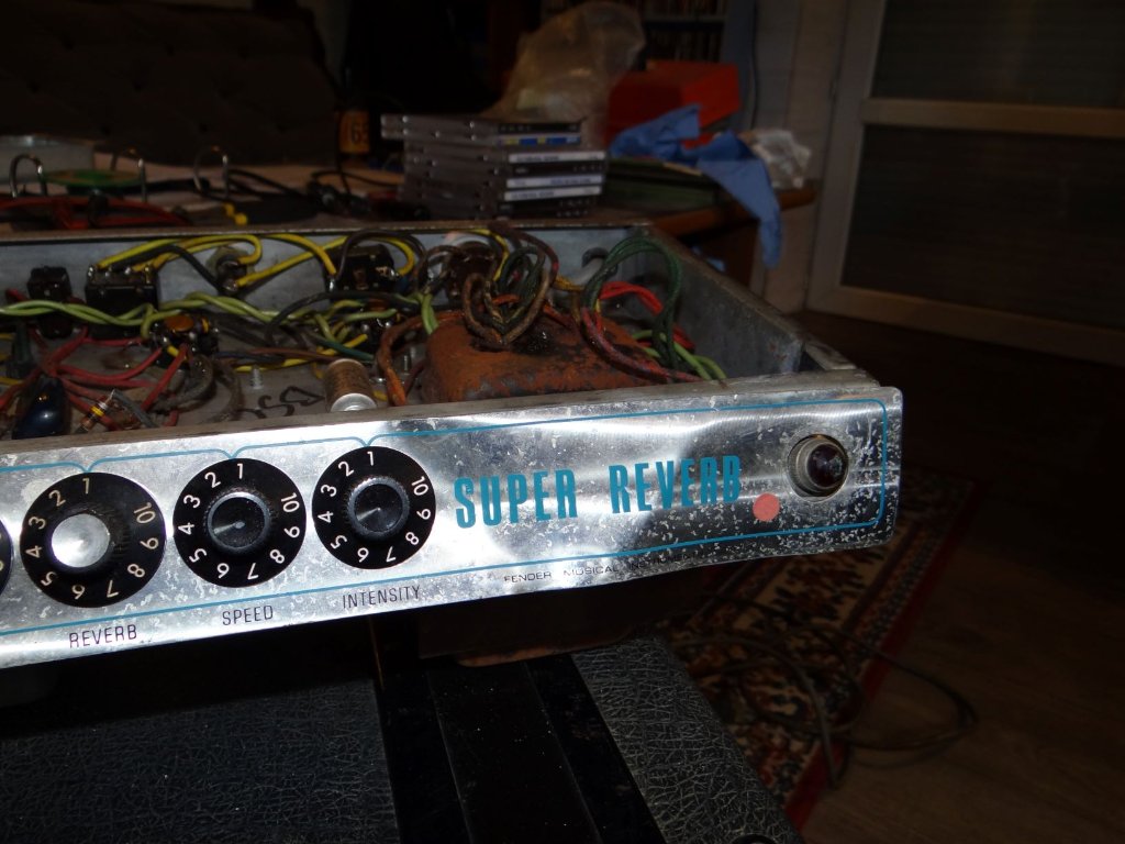 nostalgique de mon premier véritable ampli,il y a 35 ans (un deluxe reverb silver face) ,ma première intention était de monter un kit !!! et puis à force de farfouiller sur le net ,je suis tomber sur une "épave " juste à coté de chez moi d'un fender super reverb et là , je me suis dit qu il y avait moyen de ressusciter cette ampli .