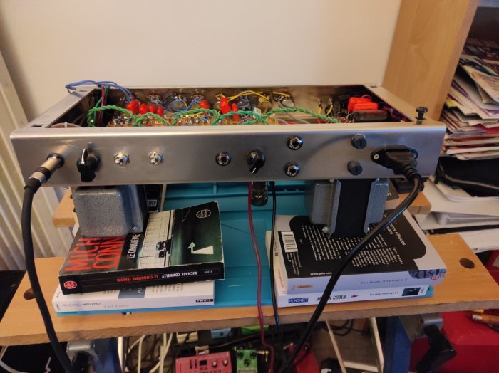 Sifflement très fort en mettant gain boost à fond, qui a disparu suite à l"ajout des protections des lampes 12 AX7.