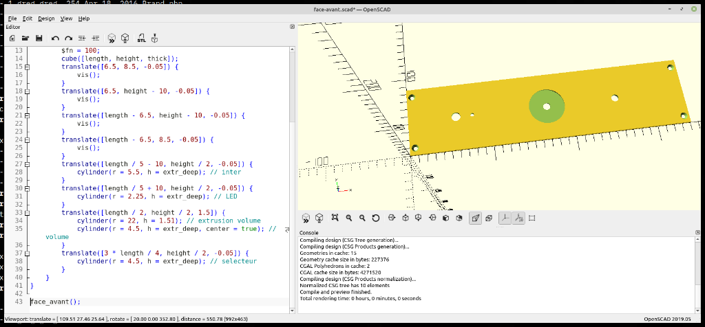 Hello ! Pardon, je me suis mal exprimé. L'idée était de pouvoir imprimer sur une feuille les tracés des découpes sur les tôles. Comme ça on ne se pose plus de questions au moment de la découpe. Et la réponse est … oui :egeek: grâce à l'opérateur projection()