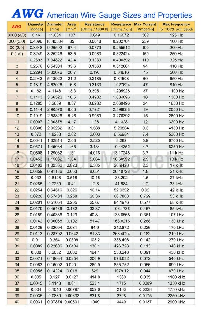 Pour un ampli dont le chauffage consomme 2A, il semble qu'avec du monobrin AWG22 (plus fin que le 18), je sois large puisque le tableau m'indique 5A max.