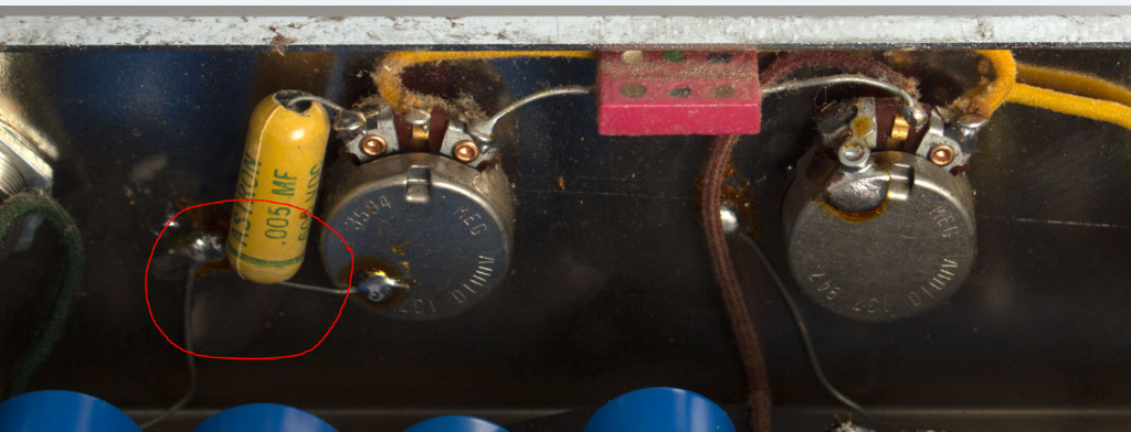 Petite question probablement toute bête pour vous. Concernant le condensateur qui relie la sortie du bouton de tone à la masse sur un 5F2A, y a-t-il une raison à l'orientation de ce dernier ? Perso je l'aurais mis dans l'autre sens.
