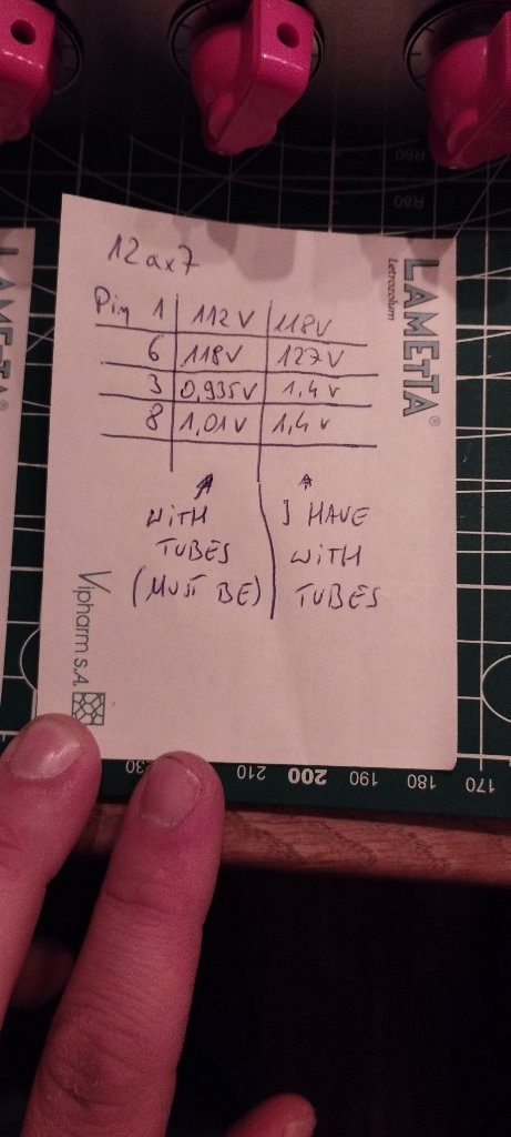 So, in a first step, the best would be to send us all mesures, pin by pin on all the tubes, and biais and supply values ...