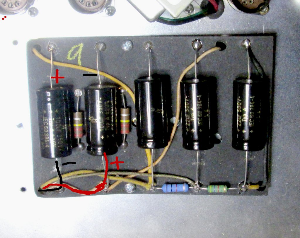 Oui, il n'y en n'a pas ! On voit que tes R de grilles sont belles, cet ampli n'a pas dû être beaucoup joué... Si tu as un transfo 110/220, avant tout changement, je le brancherais dessus en sortie 110V avec le selecteur sur 240 pour sous-alimenter l'ampli, après avoir enlevé toutes les lampes. Tu ...