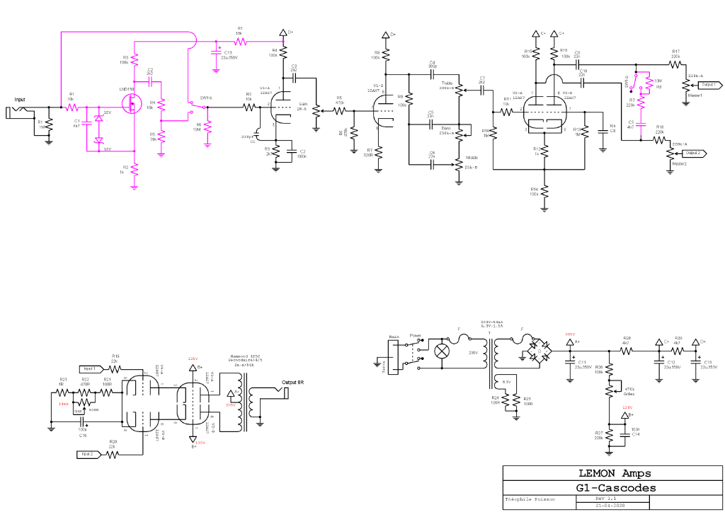 C'est vraiment cool. On a un grain au niveau du PP qui est top. J'ai aussi testé en shuntant V1b et le tone stack (d'ailleurs encore à modifier) histoire d'avoir le son le plus "brut" possible, façon Vox AC30, et ça sonne terrible pour faire du blues