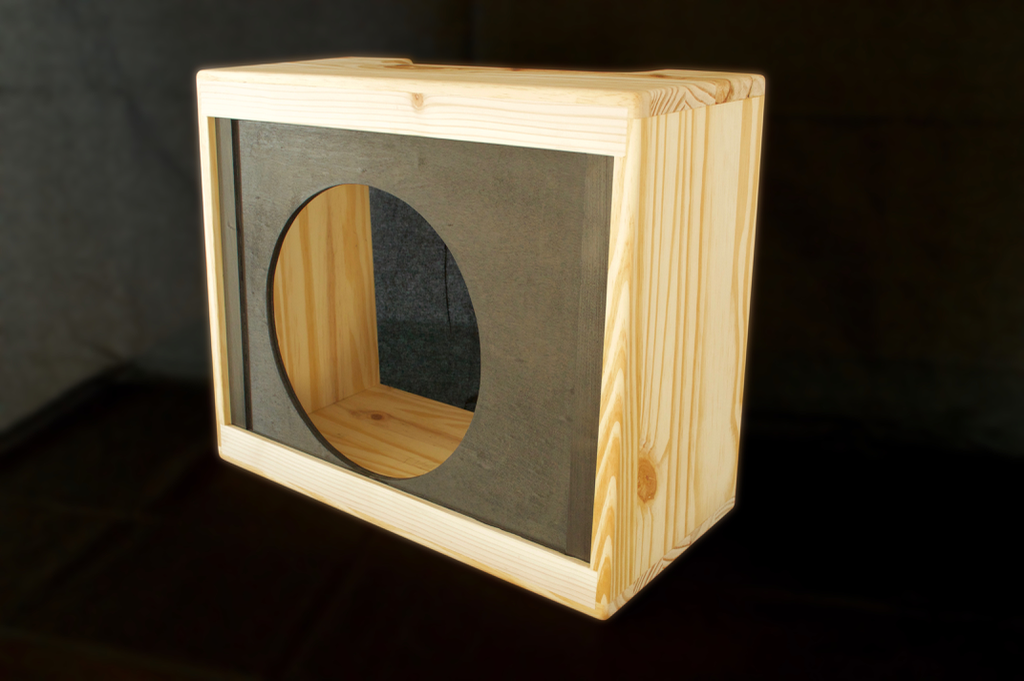 J'imagine la même chose, mais sur tous les côtés. Un peu comme les Fender TV-front. Puis ensuite ajouter le grillcloth en façade avec un cadre.