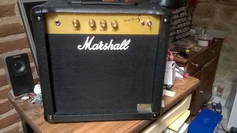 on m'a donné un Marshall MG15 FX en panne, et comme a-wai il y a déjà quelque temps, je l'ai rechapé: Evidemment, plus d'effets embarqués, juste un potar de volume...