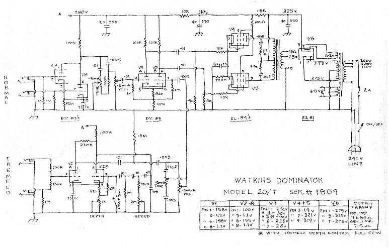 tremolo. Les tensions d'alim sont aussi plus élevées que sur le G5, 320 V au preamp.
