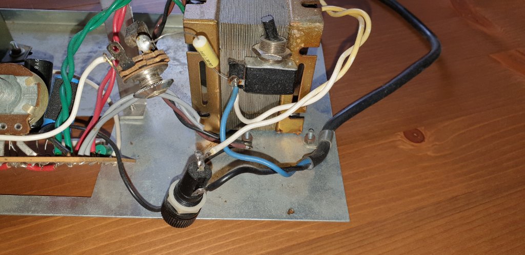 les normes de sécurité n'étant pas à l'époque les mêmes qu'aujourd'hui, le cable d'alim est old school avec 2 electrodes, et il y a un "death capacitor".