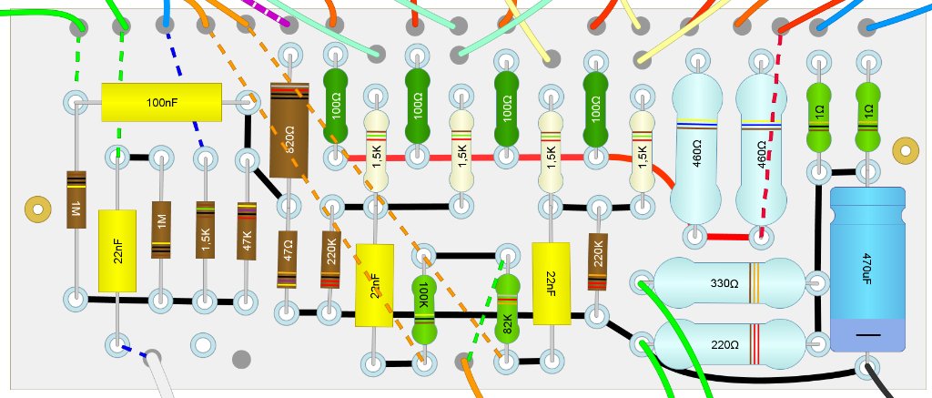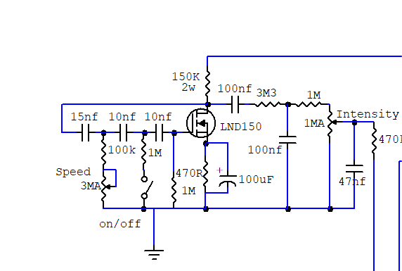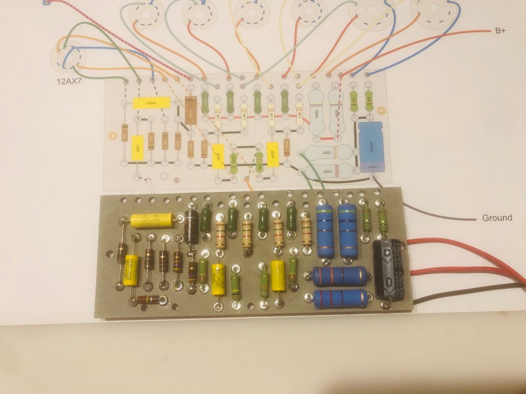 J'aurais besoin de votre avis sur mon placement de l'interrupteur du trémolo en série avec la résistance de 1M, entre les deux capas de 10nf et la masse, je ne sais pas si cela fonctionnera correctement, j'ai regardé sur un schéma fender, il n'y a pas cette résistance de 1M qui relie la masse entre les deux capa de 10n, l'interrupteur ouvre ou ferme directement la masse entre les deux capas, mais c'est certainement dû au fait que c'est une 12ax7 qui est utilisée... la R 1M doit certainement venir de l'adaptation du circuit au LND150 ?