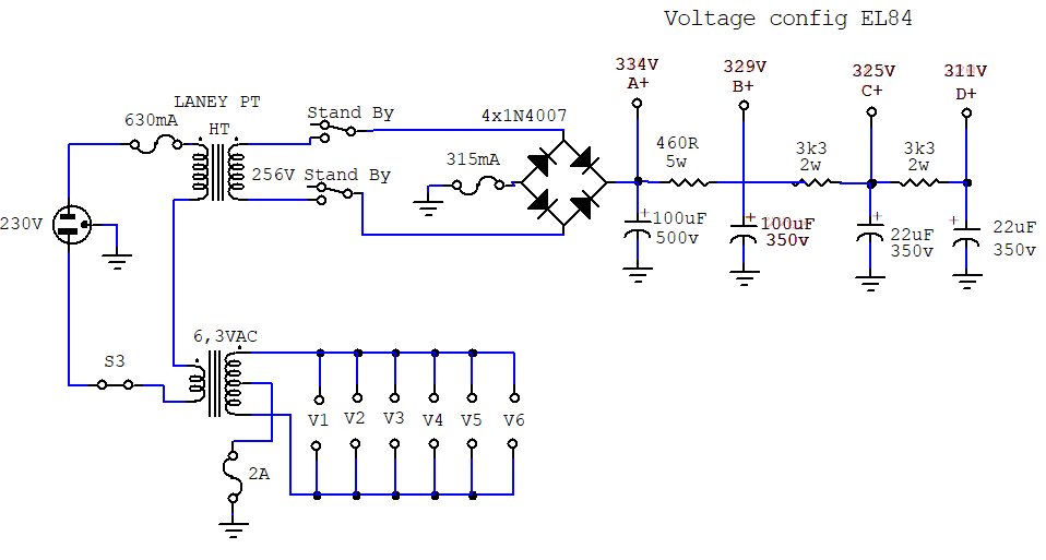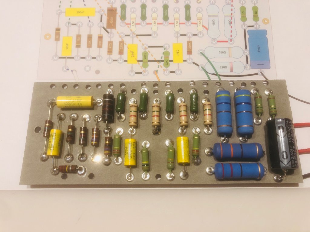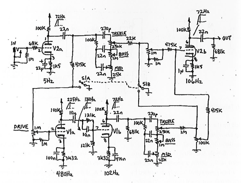 Aucune idée mais je suis parti du schéma des préamps du Laney VC30 où les deux préamps sont montés comme ça... mes connaissances théoriques ne vont pas jusque là et je te laisse en débattre avec Rimlock- quel est le problème d’avoir des canaux en oppositions de phase sachant qu’ils ne seront pas actifs en même temps?