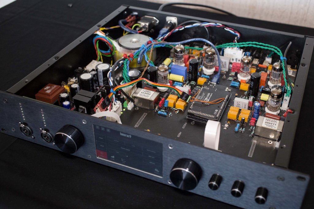-un étage intermédiaire de mosfet permet les mesures de niveaux (éviter la saturation) et l'attaque du SRPP de sortie via une puce dédié de chez texas (un tres bon produit)